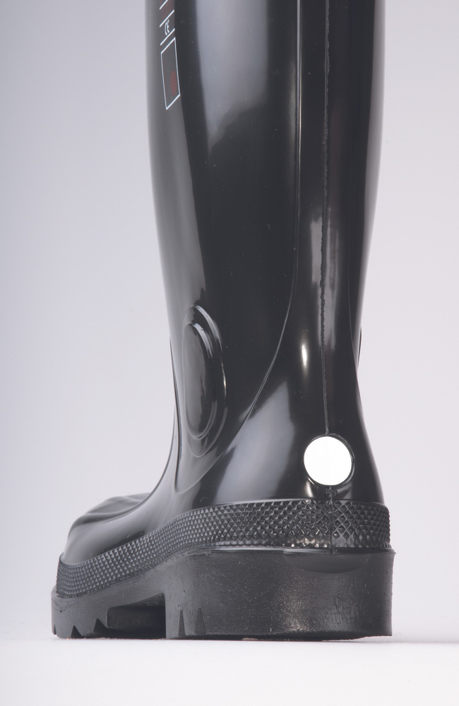 Korkean turvallisuustason antistaattiset saappaat PVC:stä ja nitriilistä, joissa on teräksinen kärjys. Suunniteltu suojaamaan vedeltä, lialta ja rei’ityksiltä. Pohja kestää happoja, öljyjä, polttoaineita ja rasvaa. Korkeus n. 38 cm, paino n. 2,5 kg.