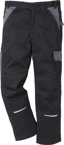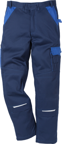 Teollisuustyöhön sopivat kestävästä ja värinpitävästä materiaalista valmistetut housut. Värit on sovitettu teollisuusmallistoon, mikä helpottaa yhdistelyä. Hyväksytty teolliseen pesuun.