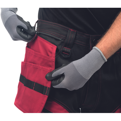 Miesten työssä käytettävät kestävät shortsit joustavasta materiaalista; monikäyttöiset taskut; 2 irrotettavaa lentotyökalutaskua edessä; koristetikkaukset.